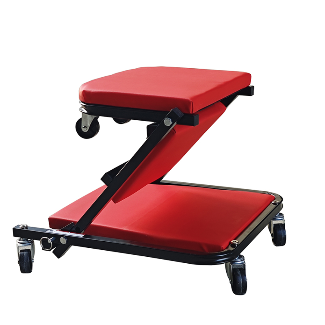 Сгъващият дизайн позволява бързо съхранение и икономия на пространство, когато столът не се използва, което е идеално за по-малки работилници и гаражи.