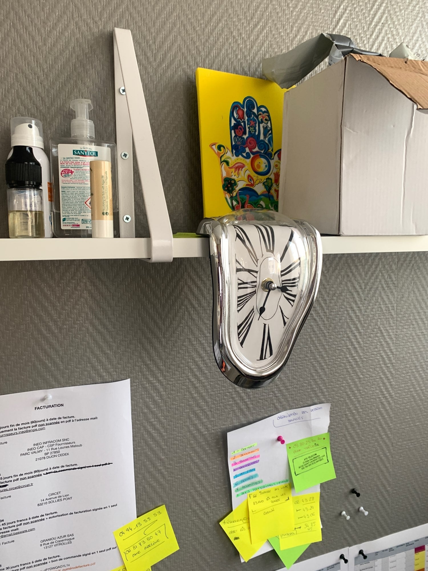 Вдъхновен от известната картина на Дали „Устойчивостта на паметта“. топящият се часовник е проектиран да се използва на рафт или да виси на бюрото ви в офиса.