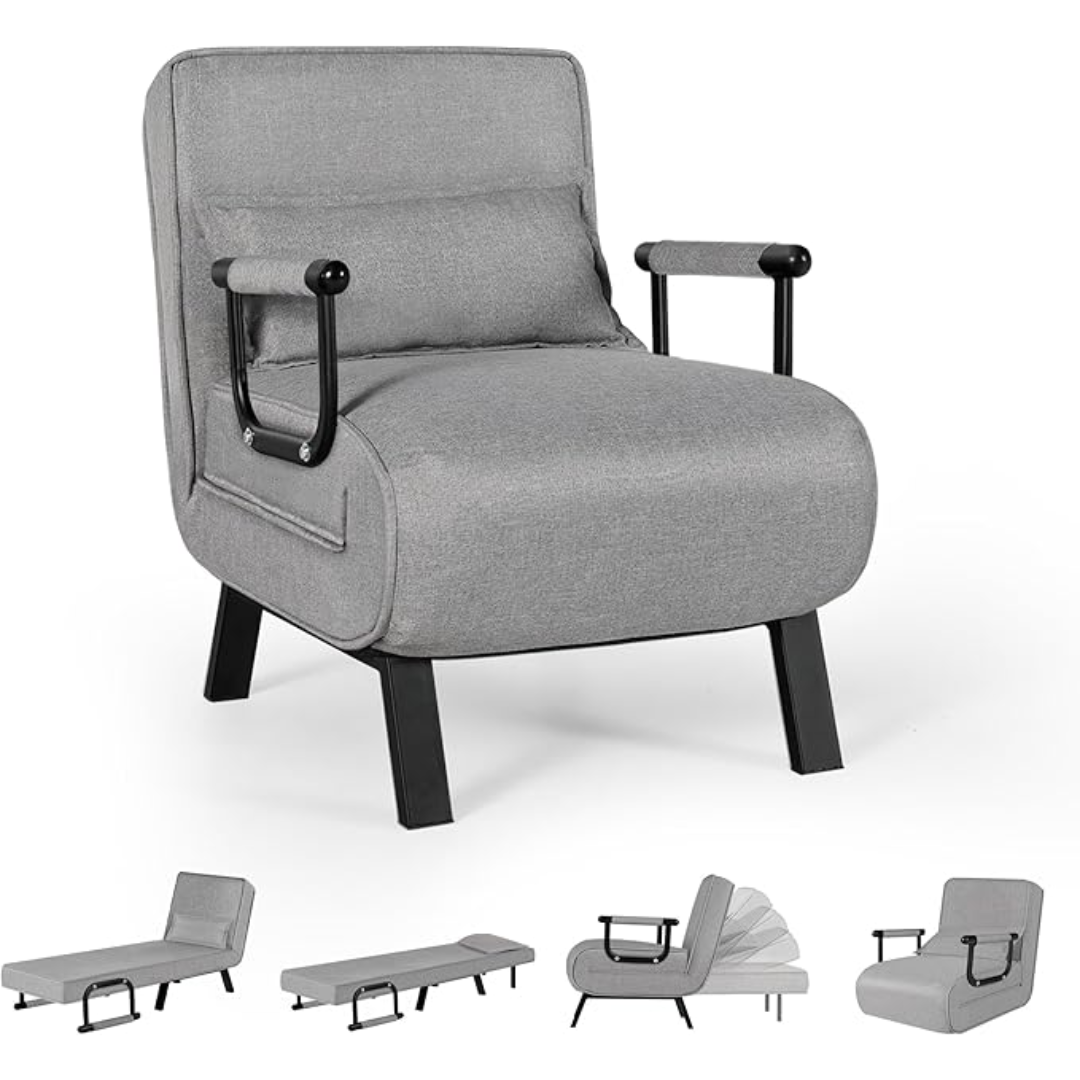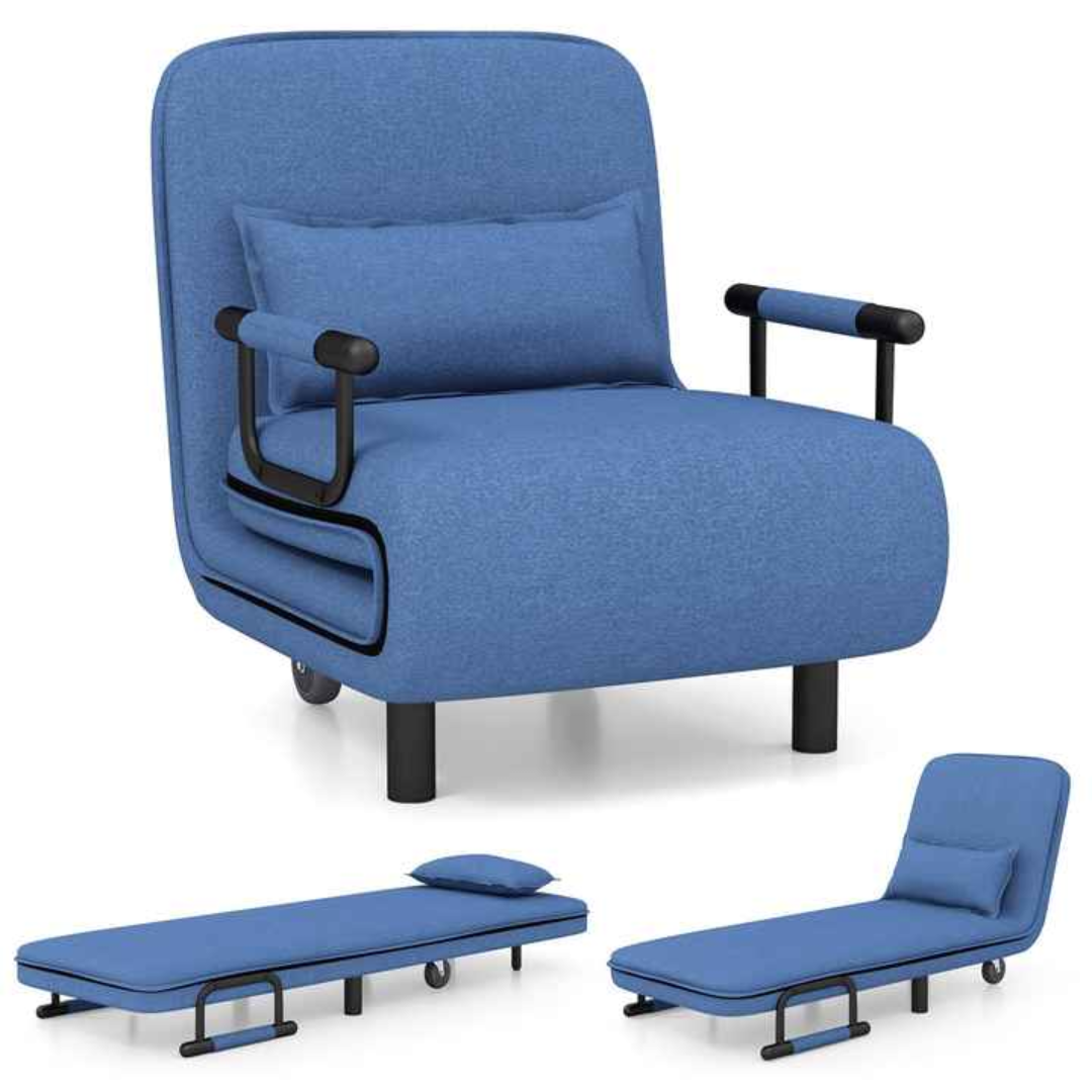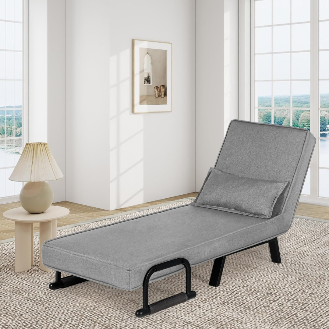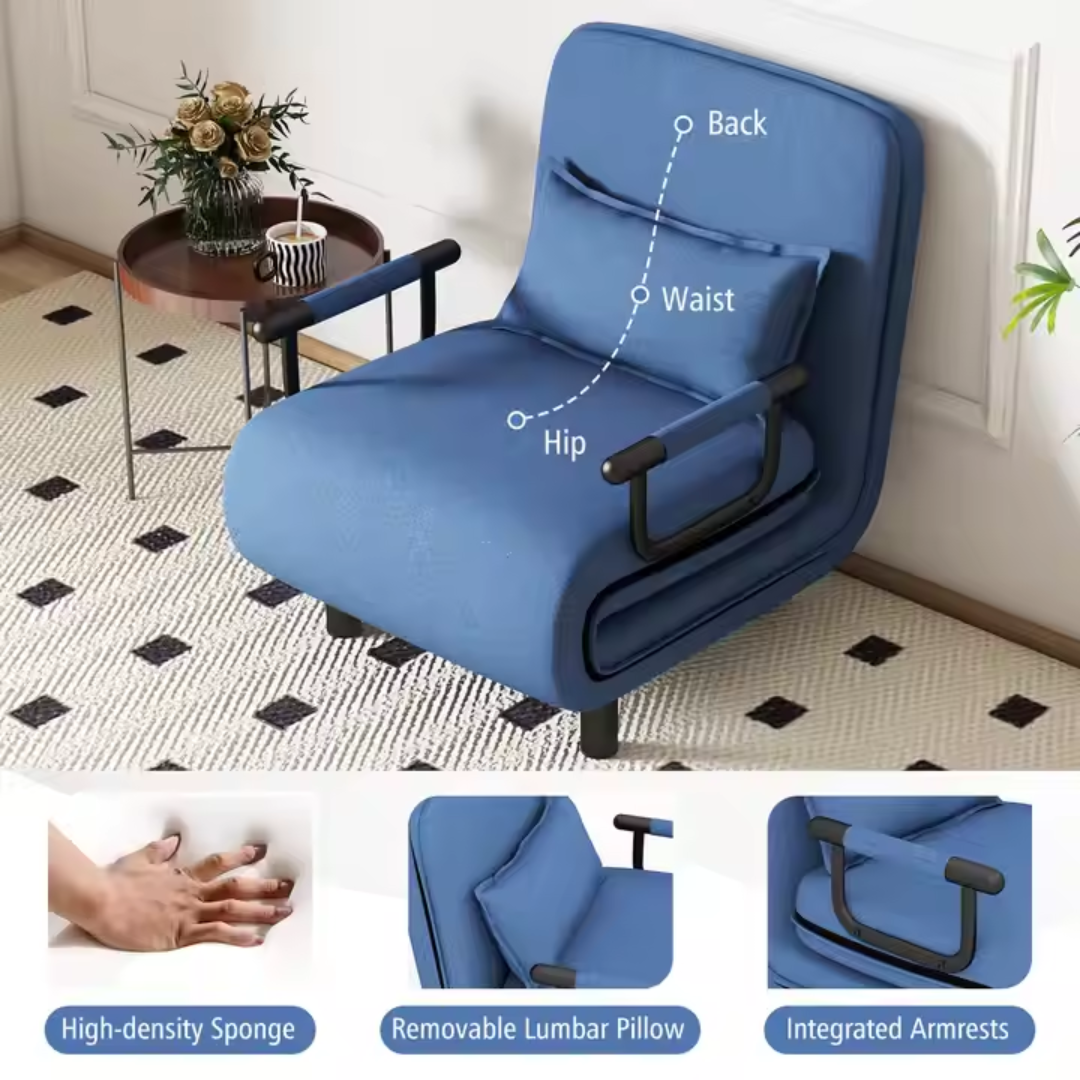 Търсите удобно, практично и модерно решение за малко пространство? Този разтегателен диван 3u1 това е перфектна смес компактност и комфорт.. Той незабавно се превръща от фотьойл в шезлонг или легло, в зависимост от това дали имате нужда от място за четене, почивка или сън.
