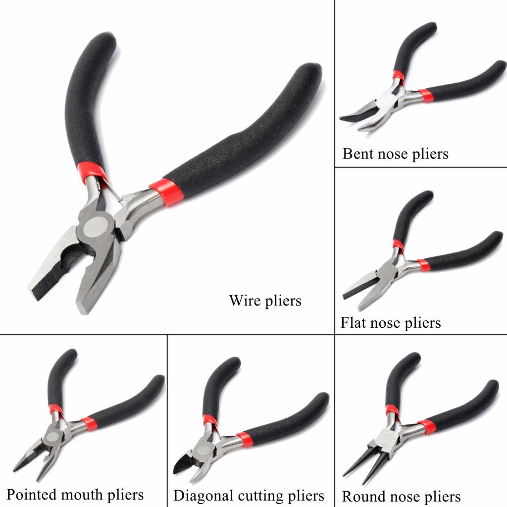 Комплектът се състои от клещи с игли. клещи с извити накрайници. клещи с прави накрайници. клещи с кръгли накрайници и класически режещи клещи.