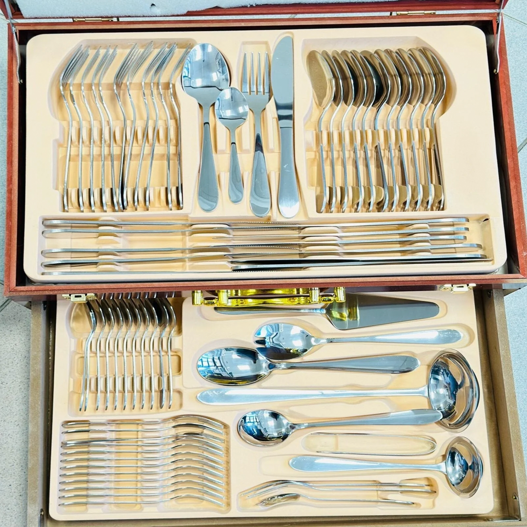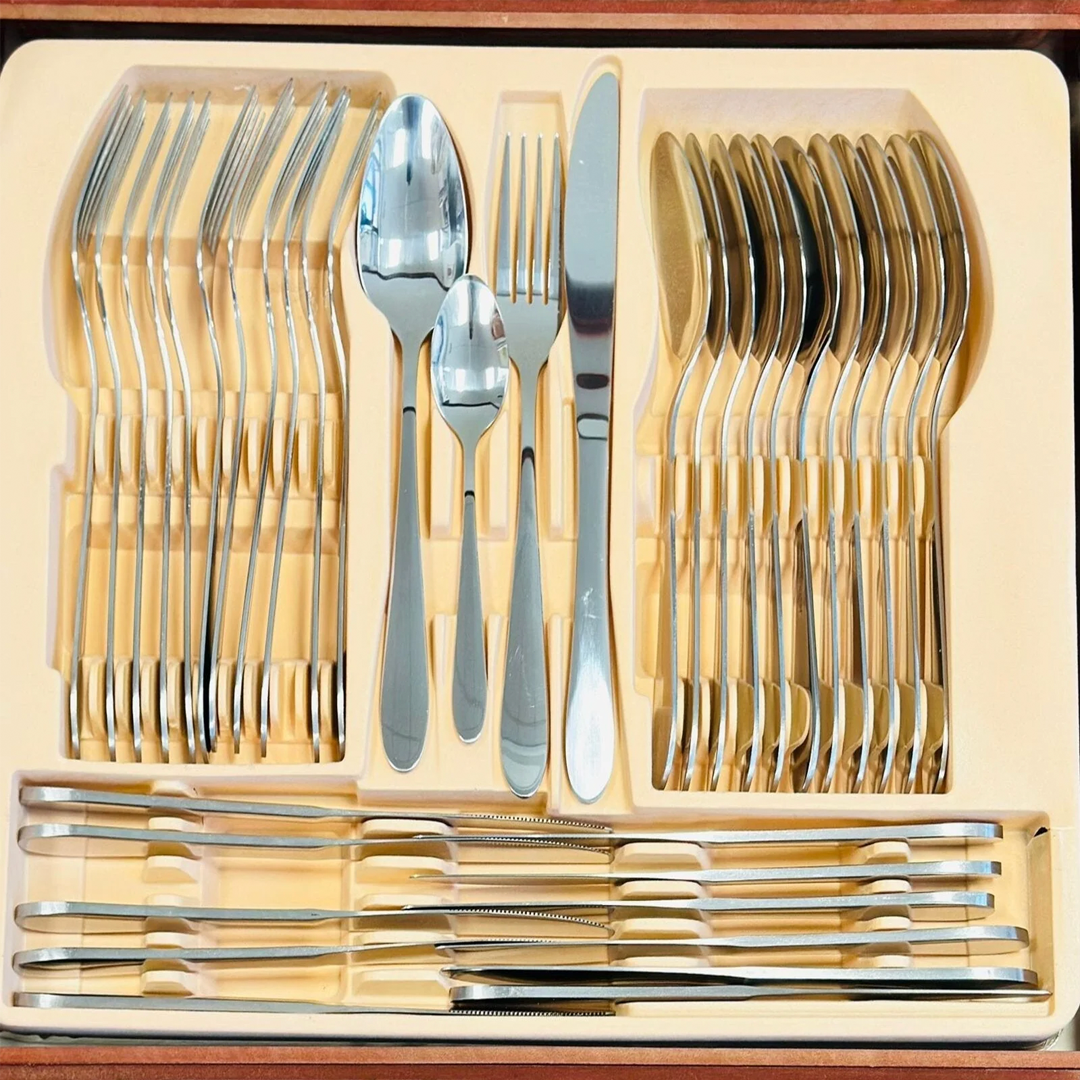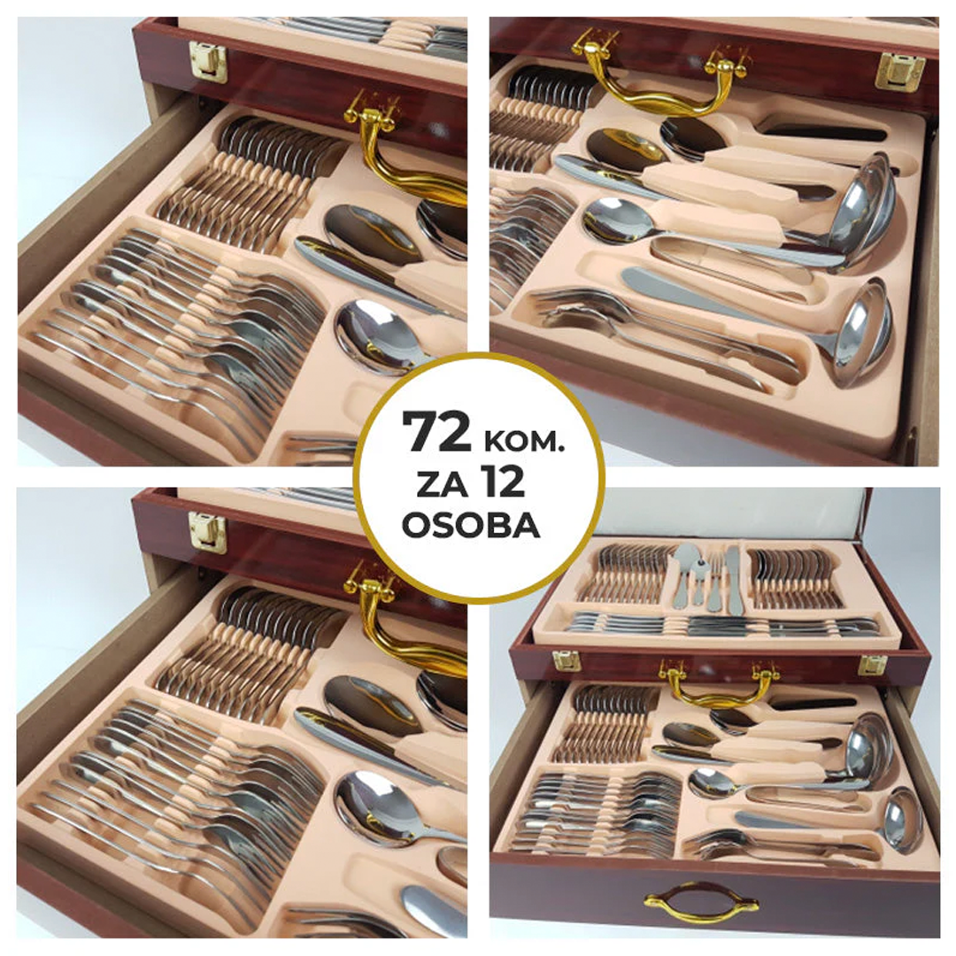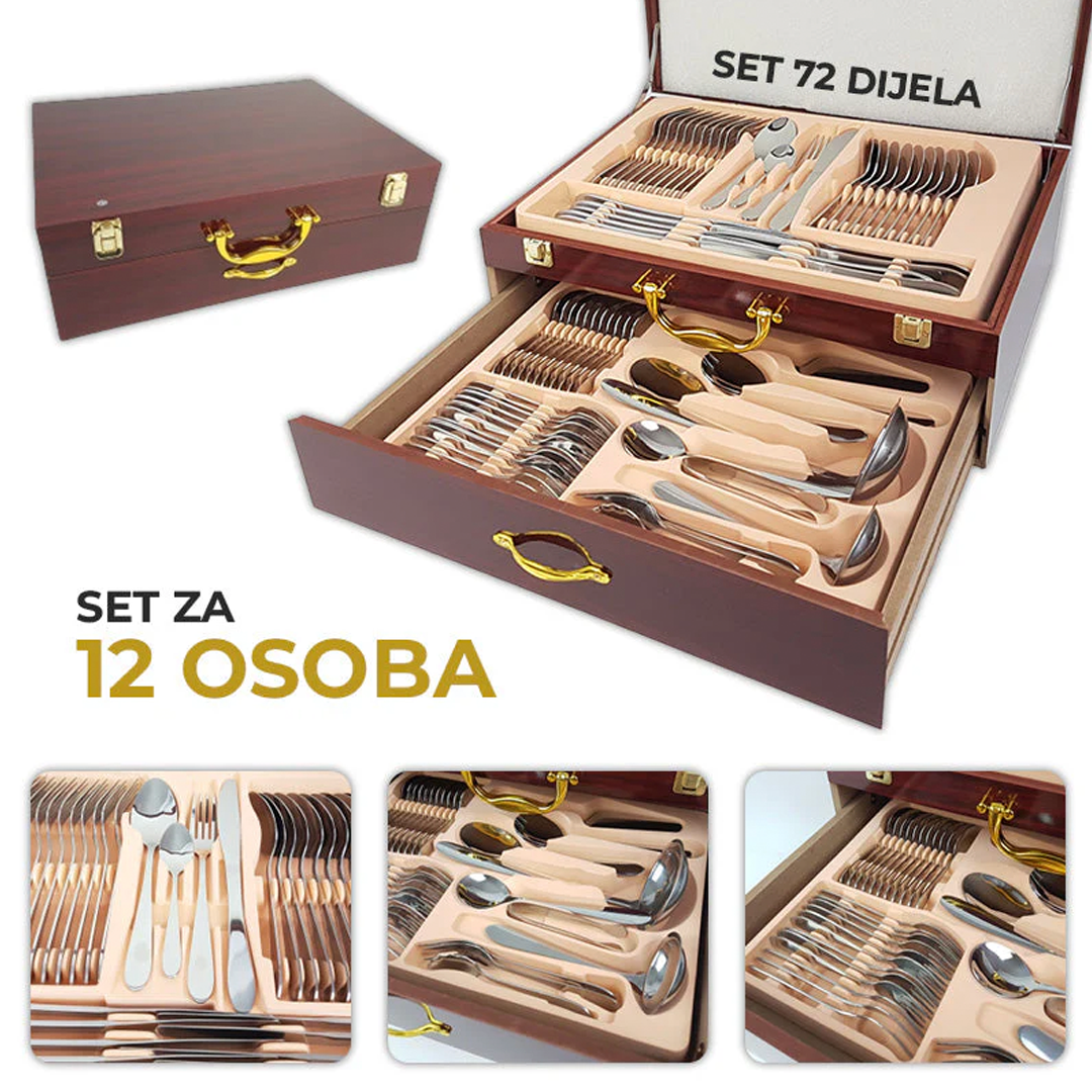 ✨ Този комплект прибори за хранене от 72 части в елегантна кутия е перфектен за всякакви поводи, от официални вечери до ежедневни ястия. 🌟