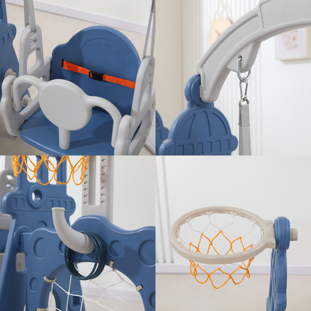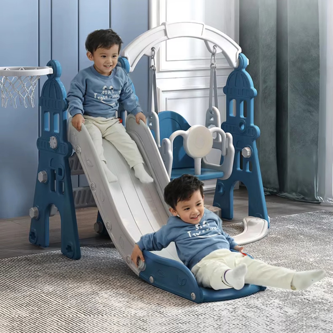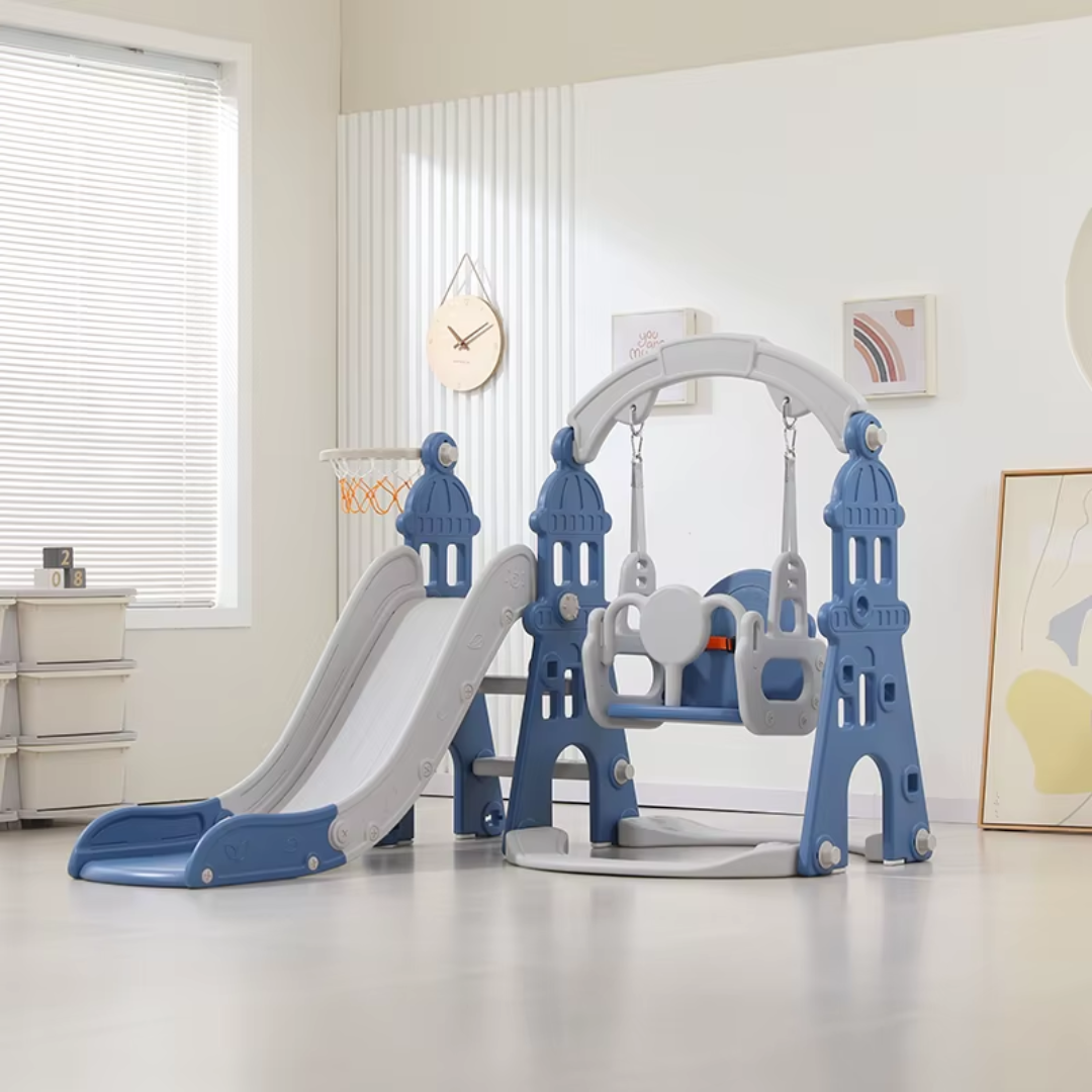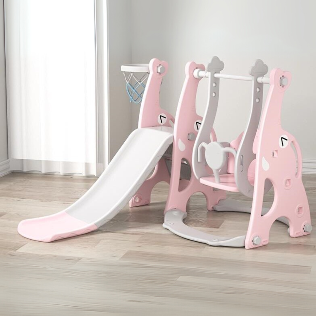 Въведете забавление и безопасност в детската стая или двор с тази многофункционална детска площадка 4-в-1! Комплект включва слайд, люлка, стълба и кошница, осигуряване на на на деца разнообразни възможности за игра и насърчаване на развитието на двигателните умения.