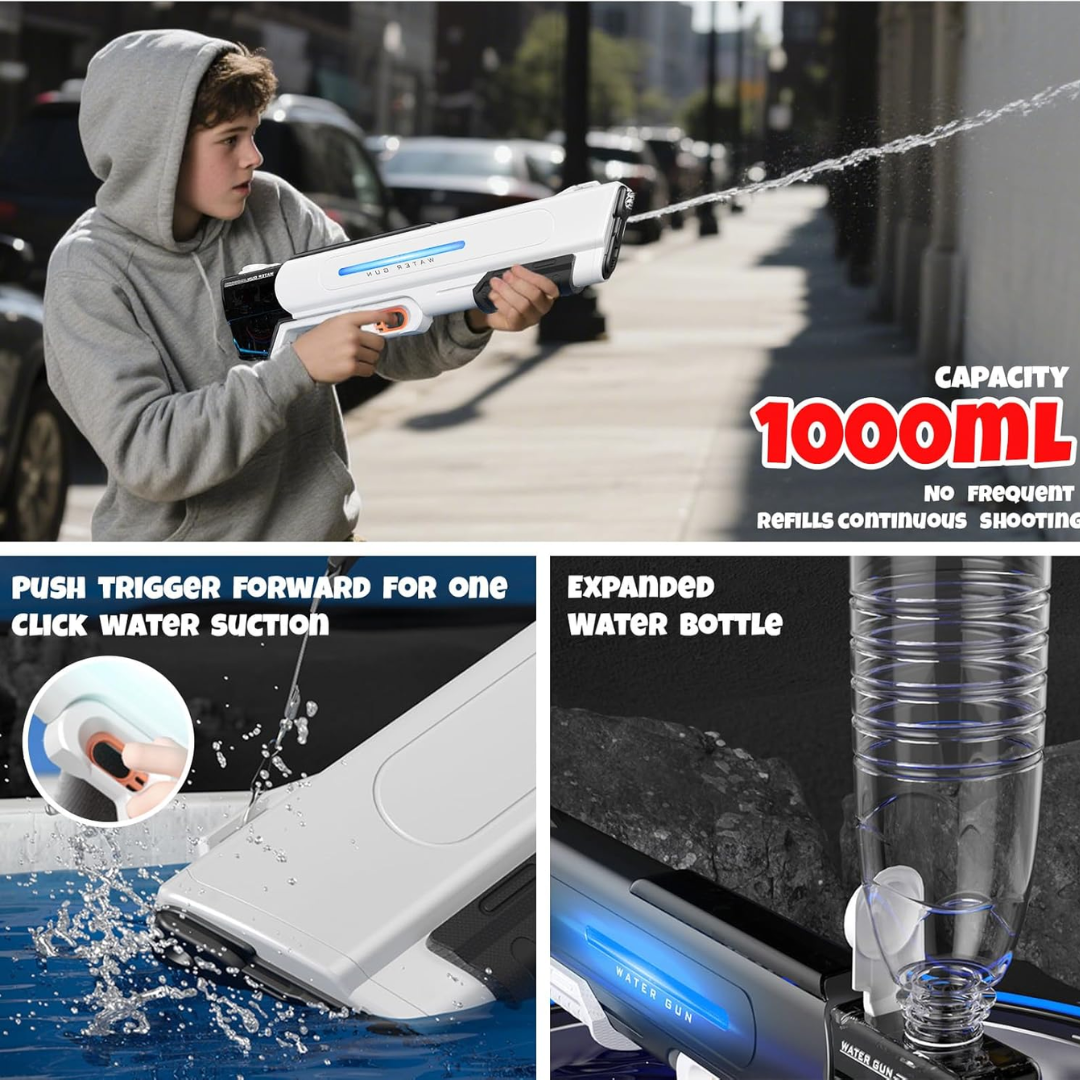 Въведете още по-забавно в летните дни с това електрически пистолет на водата с дълги разстояния и атрактивни LED светлини. Идеален за деца и възрастни, той осигурява часове забавление в басейна, плажа или в двора.