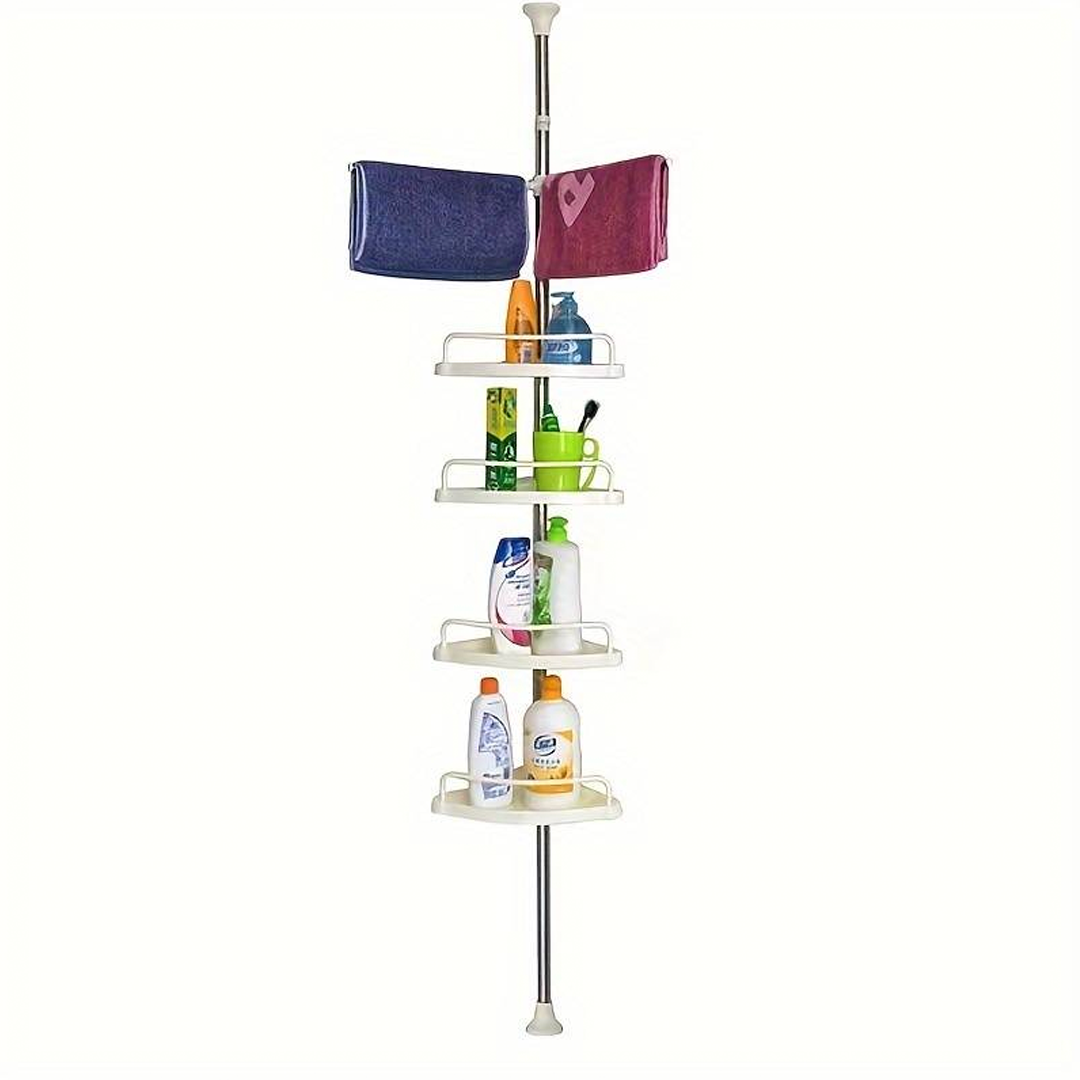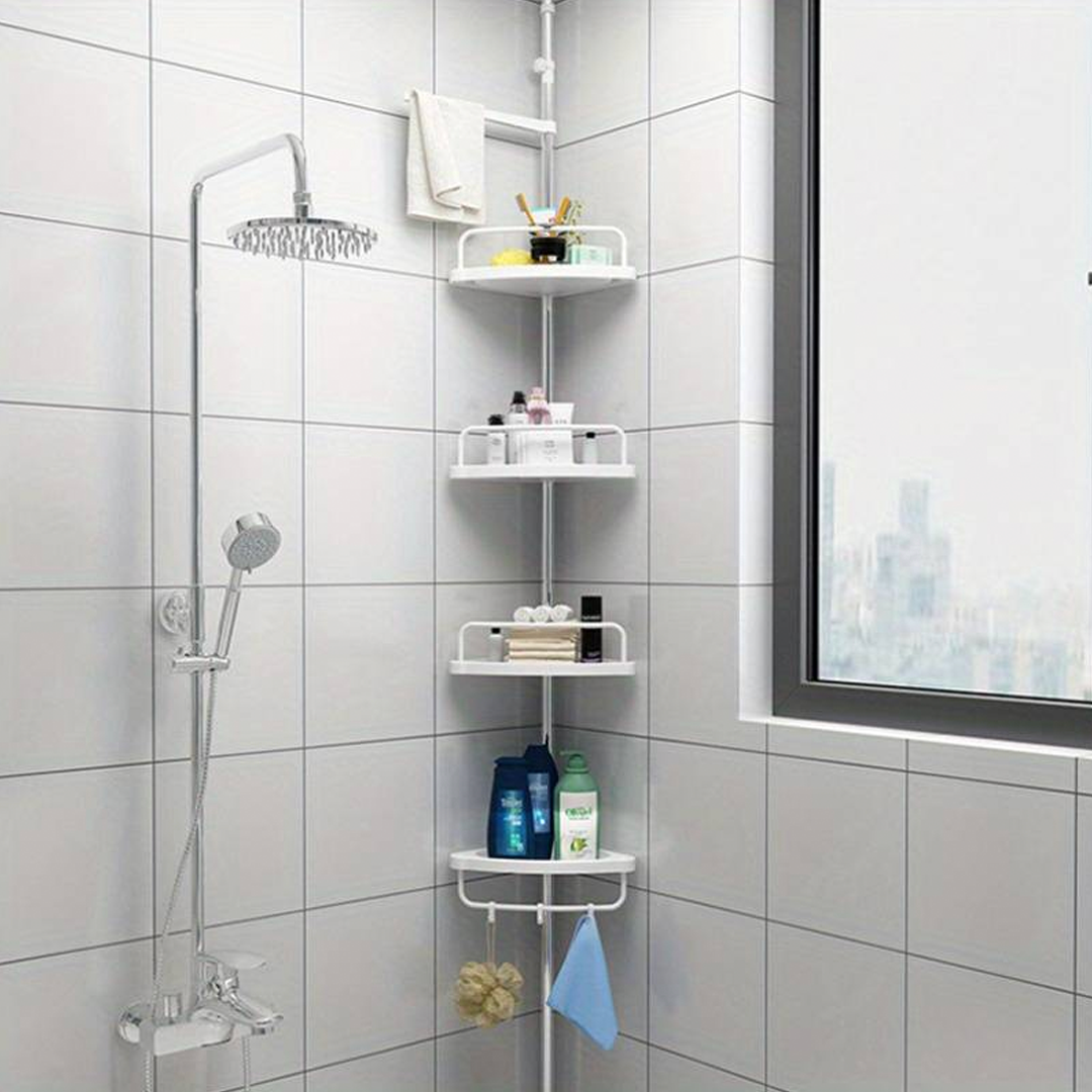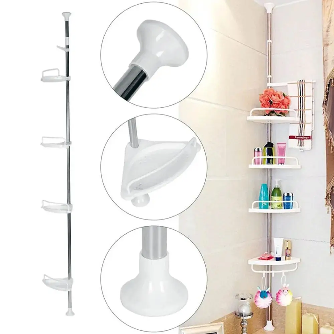 🔧 Телескопична, пружинна, въртяща се и заключваща се функция, която се вписва перфектно в ъгъла на вашия душ (от пода до тавана) или вана (от ръба на ваната до тавана) за няколко секунди.