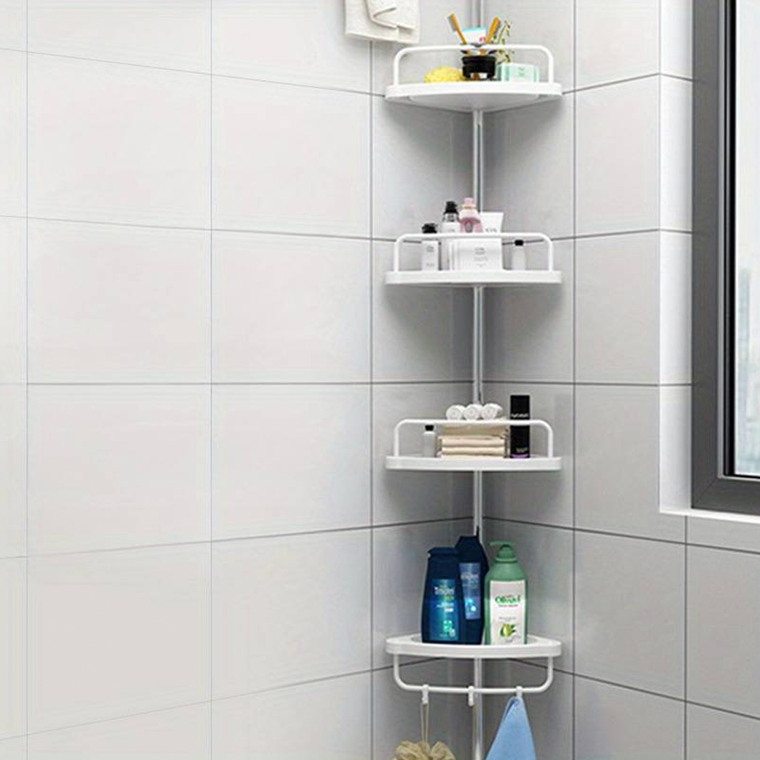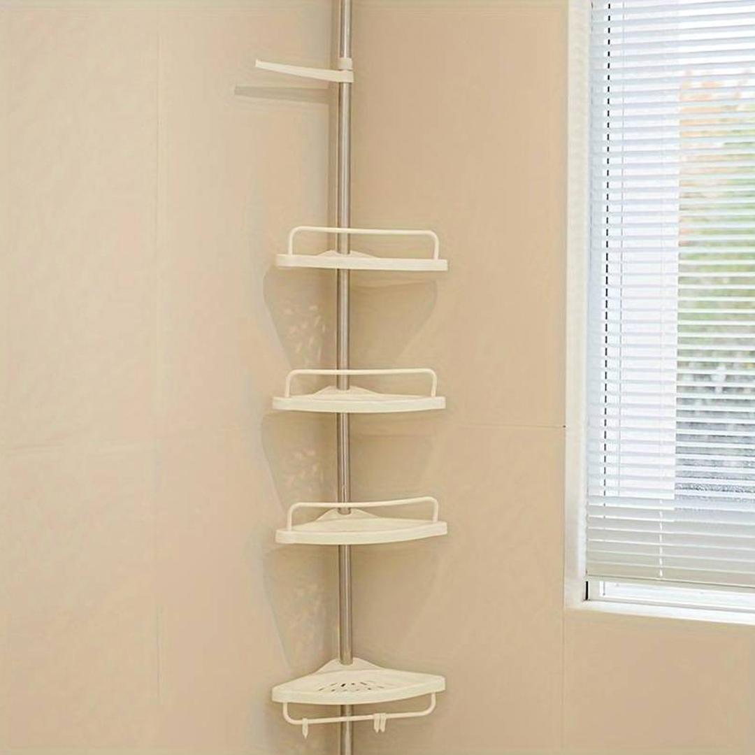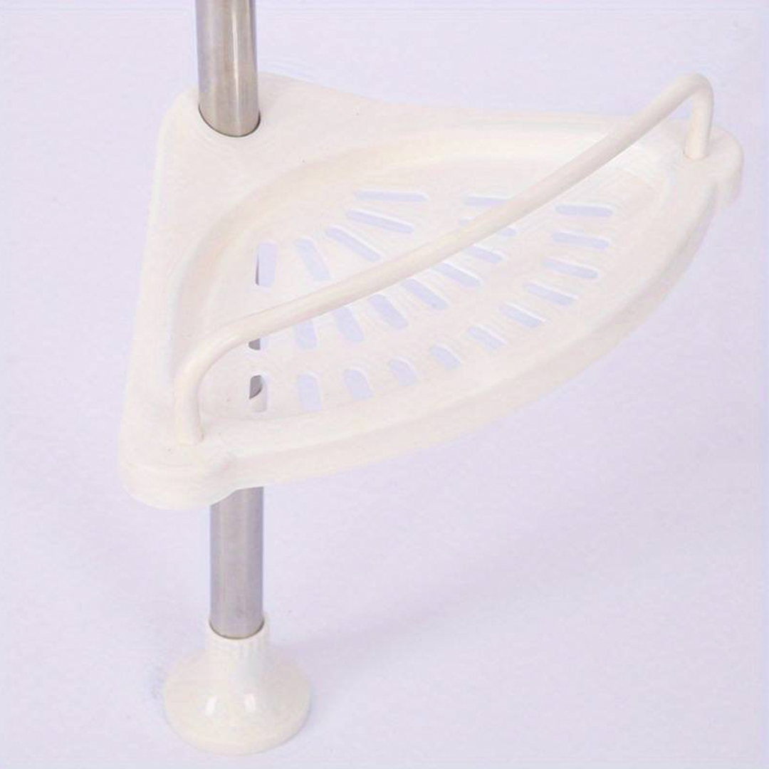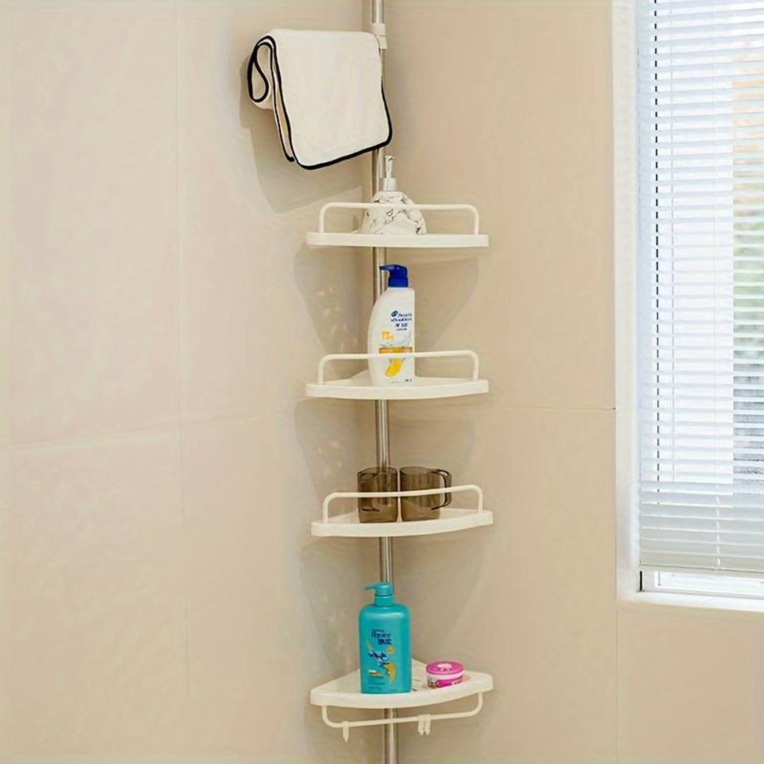 🔧 Телескопична, пружинна, въртяща се и заключваща се функция, която се вписва перфектно в ъгъла на вашия душ (от пода до тавана) или вана (от ръба на ваната до тавана) за няколко секунди.