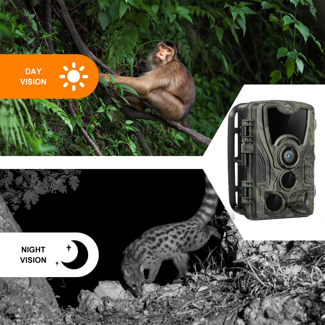- 36 броя IR светодиоди. супер дълъг обхват на откриване до 20 m / 66 фута. Времето за задействане е 0.3 s. бързо непрекъснато снимане. никога не пропускайте важна снимка.