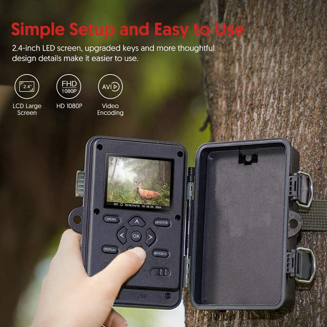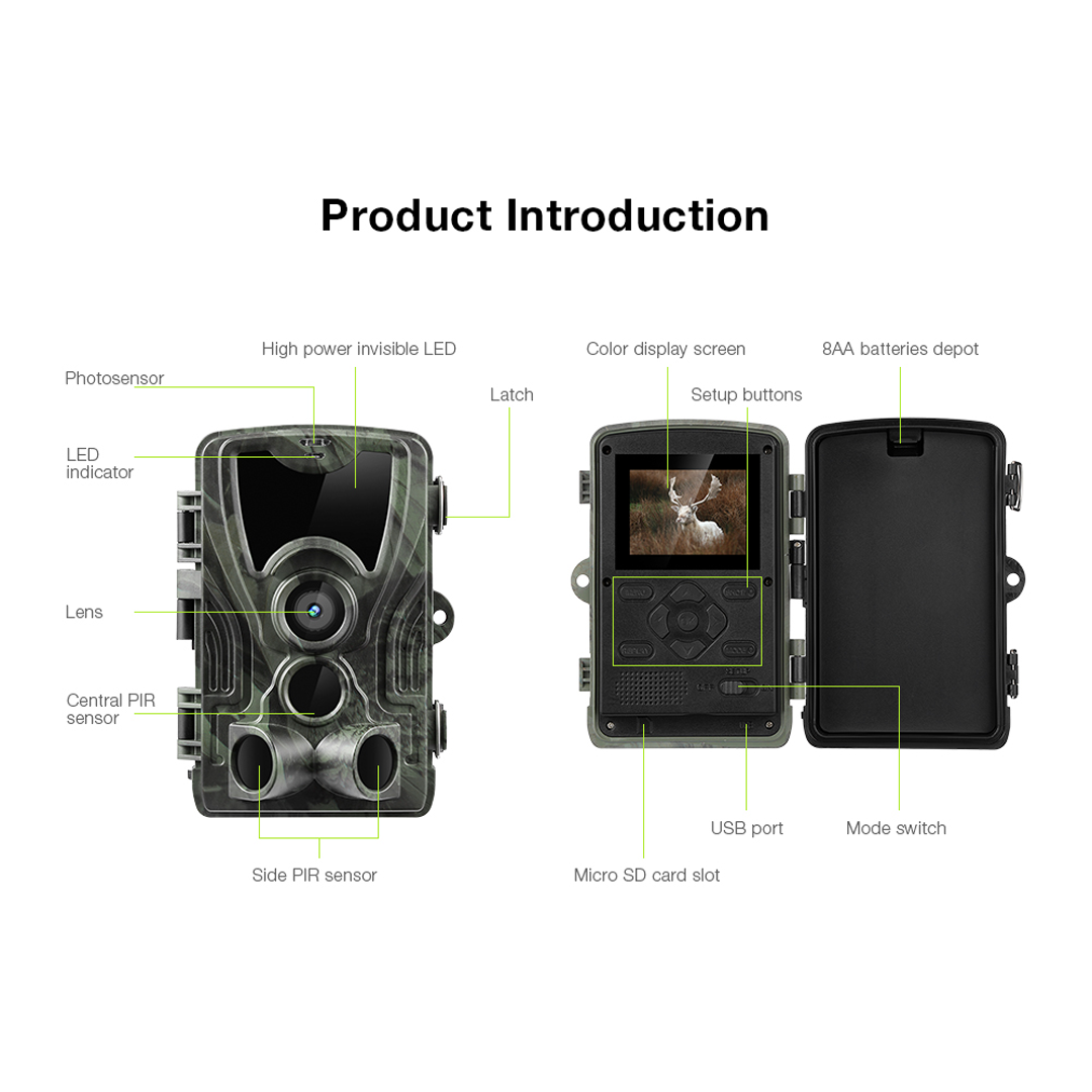- 120 градуса 1080P HD PIR сензорна камера. поддържа 16MP/12MP/8MP / 5MP / 3MP опционална резолюция на изображението. 1080P 30fps видео. Инфрачервена камера за изследване на дивата природа.
