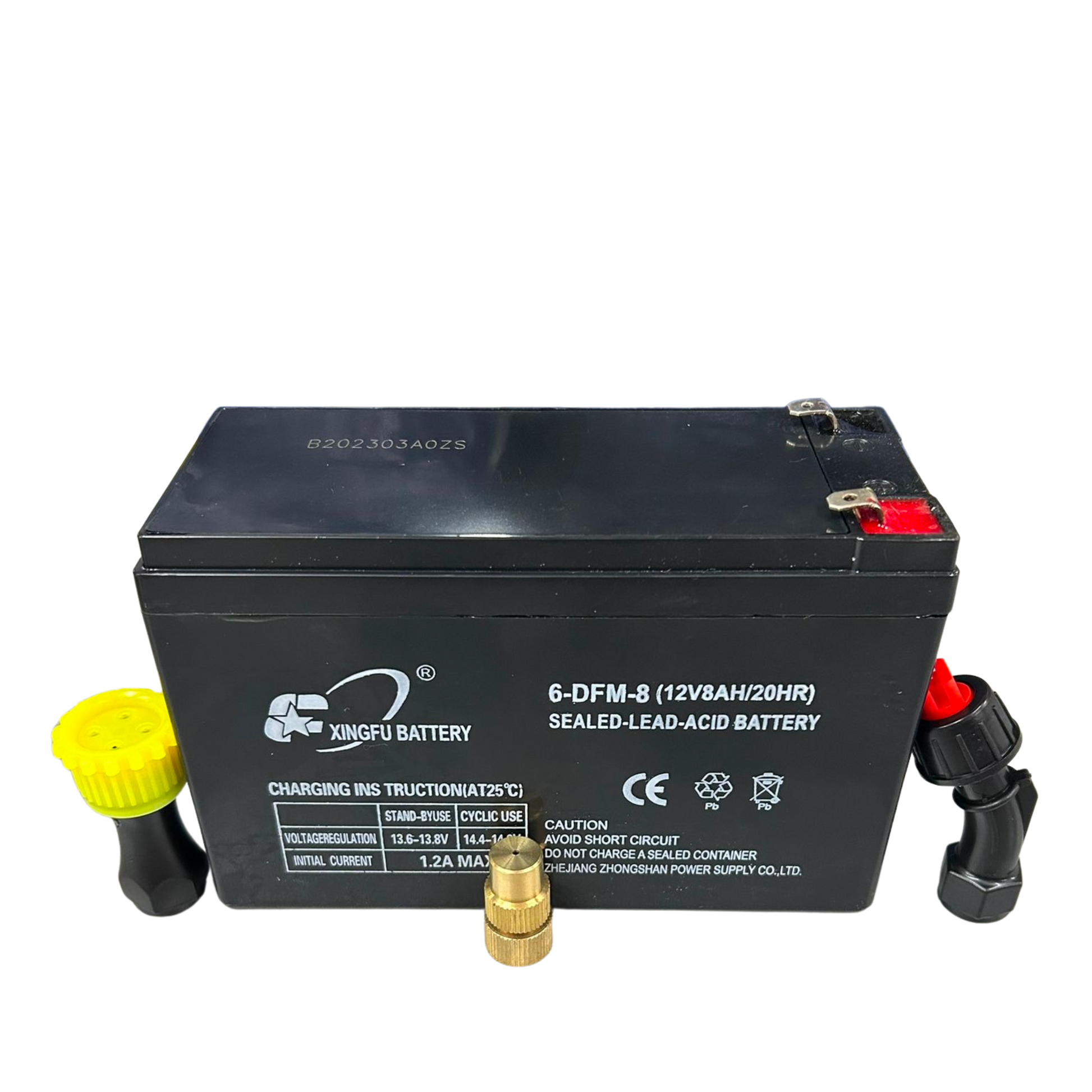 Предлагаме и батерия за акумулаторна пръскачка 12V с увеличен капацитет 8Ah. която ще ви позволи до 15ч.