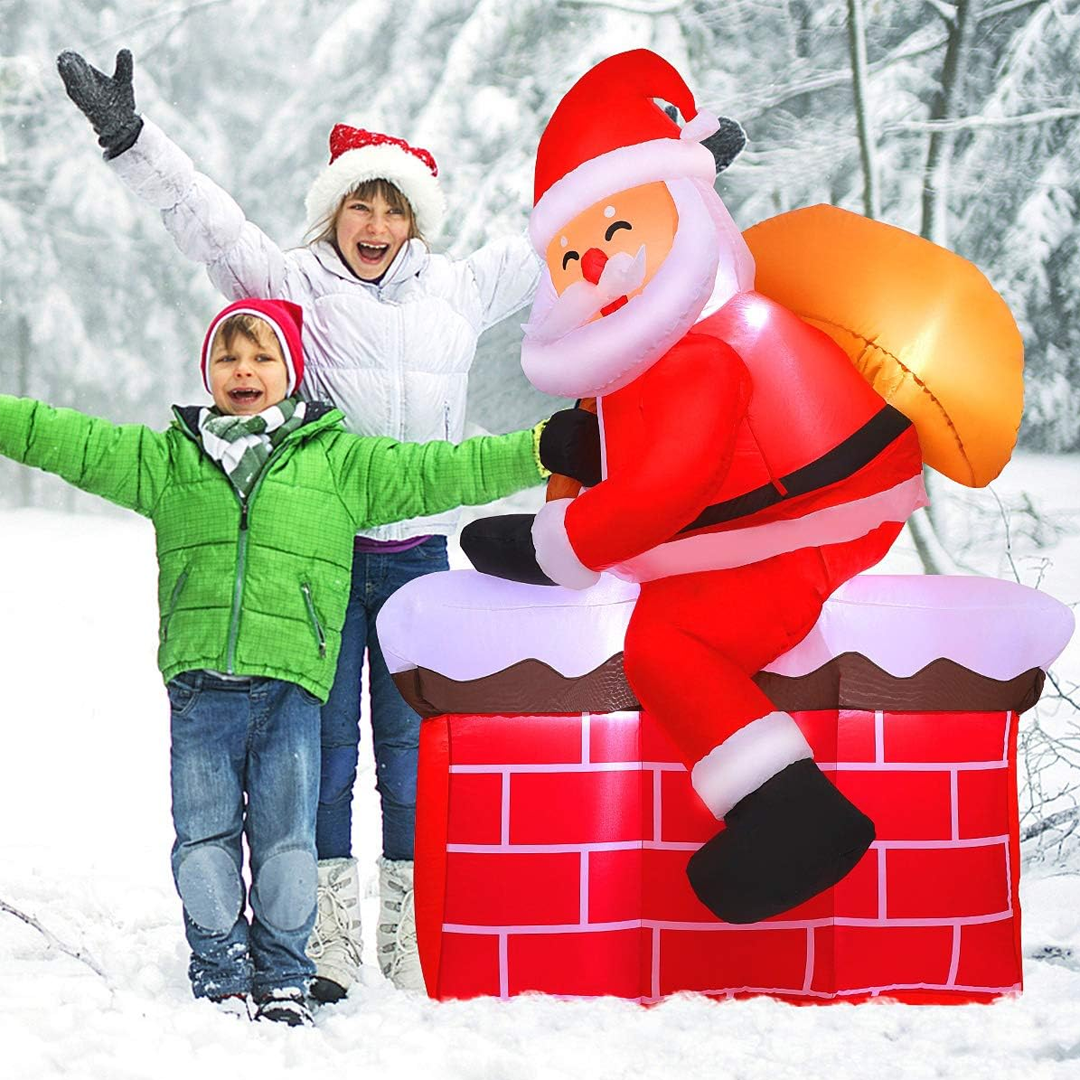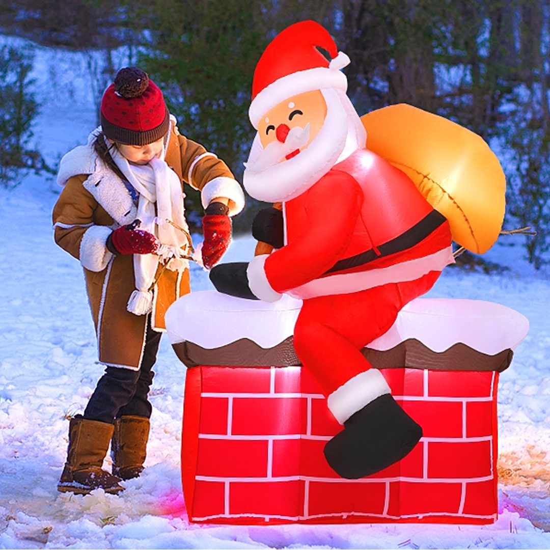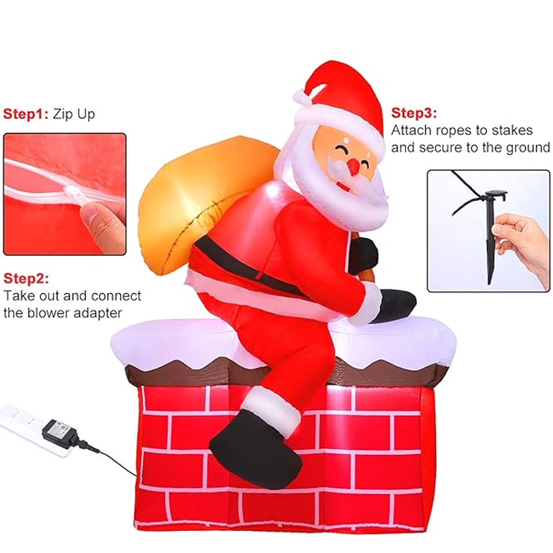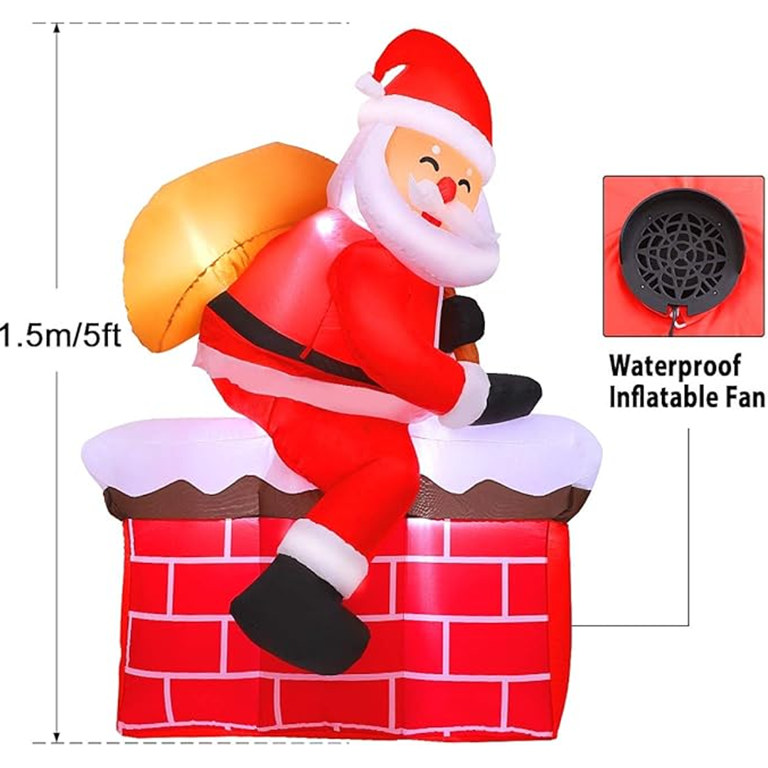 Съживете коледната атмосфера с този весел надуваем декор на Дядо Коледа, който седи на комина!— за по-малко от 30 секунди е готов за използване. Работи с ток, което го прави много лесен за употреба — просто го включете в контакт.