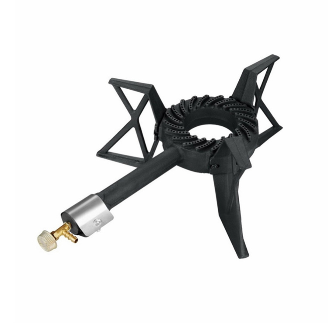 Качество газова горелка, изработена от чугун осигурява силно, дори и стабилно затопляне – перфектно за приготвянето на котли, готвене на зима, яхния или други ястия на открито.