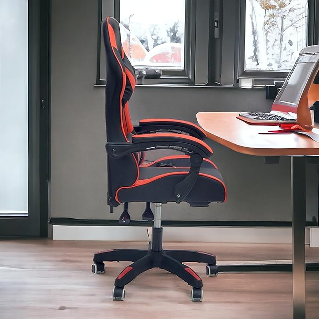 Проектирана за многочасово седене, столът е регулируем по височина и оборудван с устойчиви, ергономично оформени подлакътници и облегалка, осигуряващи оптимална подкрепа по време на интензивни игри.