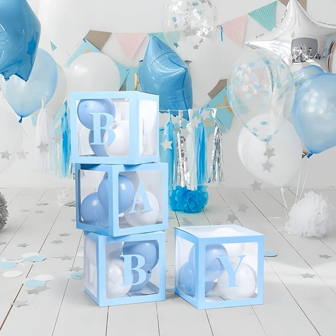 - Съдържание на опаковката: 4 сини кутии (8,9 х 8,9 инча), 4 етикета с буквите "B", "A", "B", "Y".