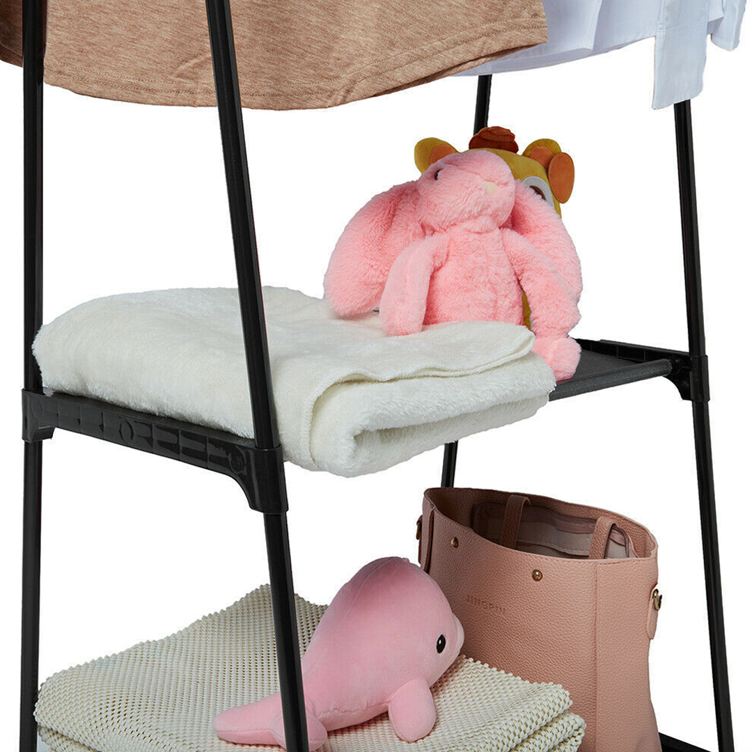 🌟 СУПЕР ФУНКЦИОНАЛНОСТ: Отгоре могат да се закачат закачалки за дрехи. шалове. чанти и колани. Два рафта отдолу осигуряват съхранение на обувки. кутии за съхранение и други предмети.