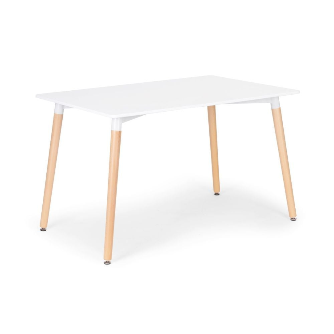 Краката са изработени от масивна букова дървесина, което осигурява стабилност, издръжливост и естествен вид. Комбинацията от бяла плоча и топлина от дърво прави масата на Милано перфектния избор за модерни, но и класически пространства.