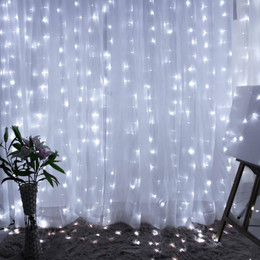 Дори 200 лампи ще осигури специална атмосфера. независимо дали става дума за празненство. интимен момент или декемврийските празници. Лампите са под формата на перде (завесата не е включена). така че просто ще ги поставите на стената или панорамния прозорец.