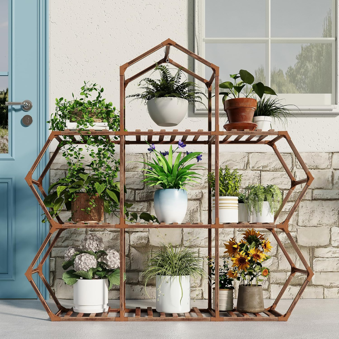 Добавете топлина и елегантност към дома или градината си с застерна стелажа във формата на замък, Този творчески багажник позволява настаняване поне 9 прасета с растенияи благодарение на отворената структура тя осигурява достатъчно светлина за всяко растение. Той е идеален за кът за всекидневна, балкон, тераса, градина или дори офис.
