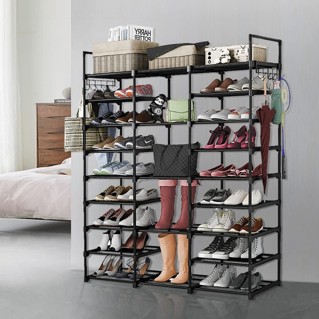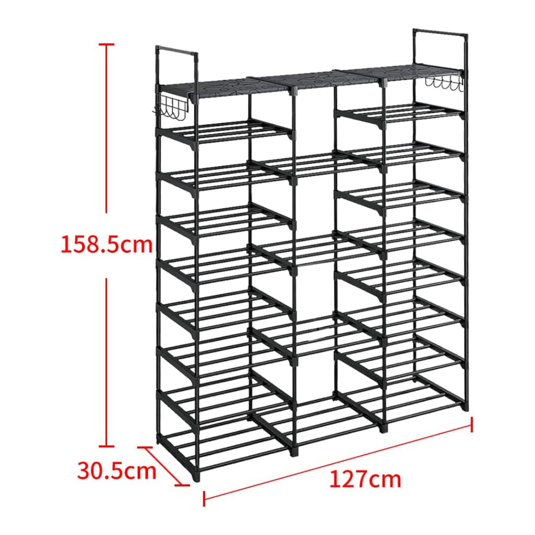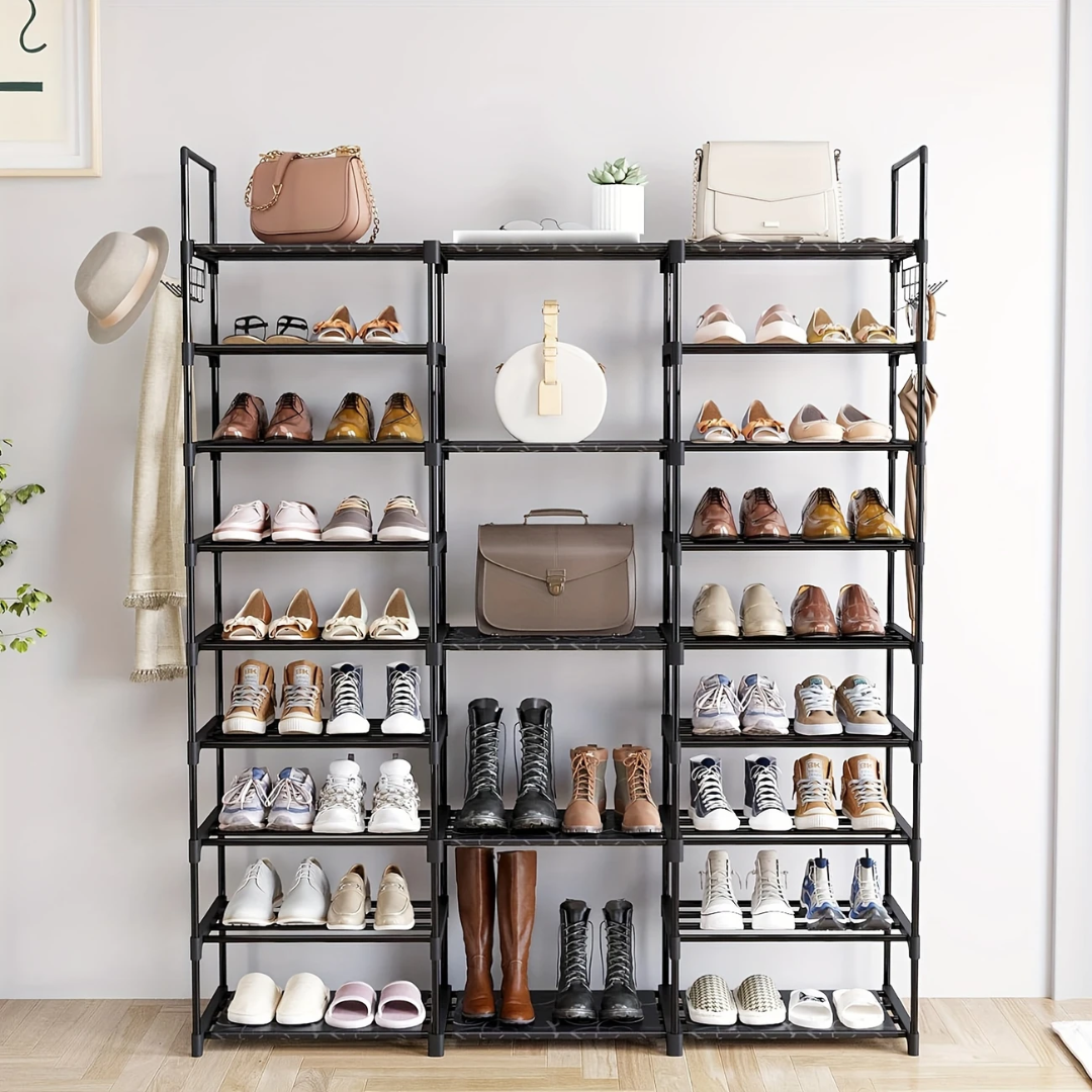 Редактиране на коридор, гардероб или спалня до стабилен метална стойка за обувки с 9 нива и капацитет до 55 чифта обувки. Този организатор е издръжлив, водоустойчив и гъвкав – идеален за всеки дом!