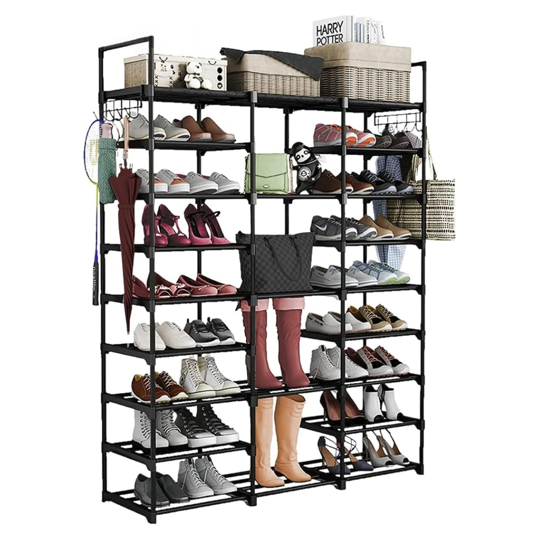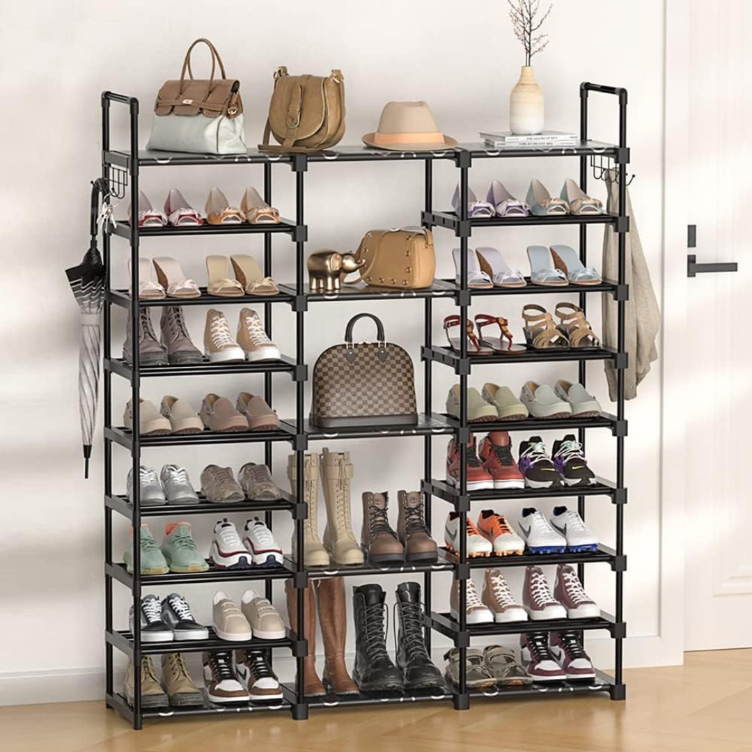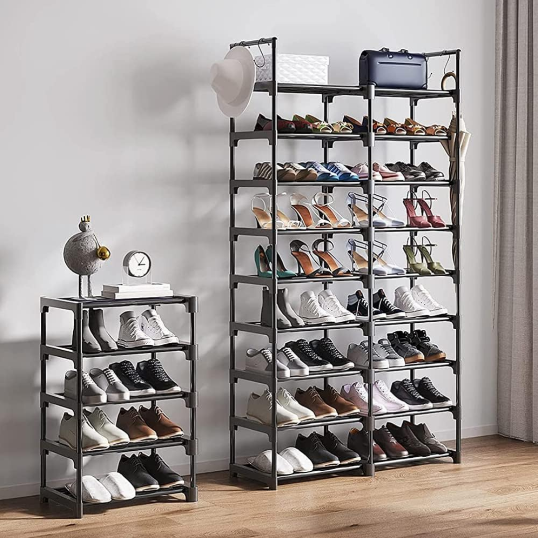 Редактиране на коридор, гардероб или спалня до стабилен метална стойка за обувки с 9 нива и капацитет до 55 чифта обувки. Този организатор е издръжлив, водоустойчив и гъвкав – идеален за всеки дом!