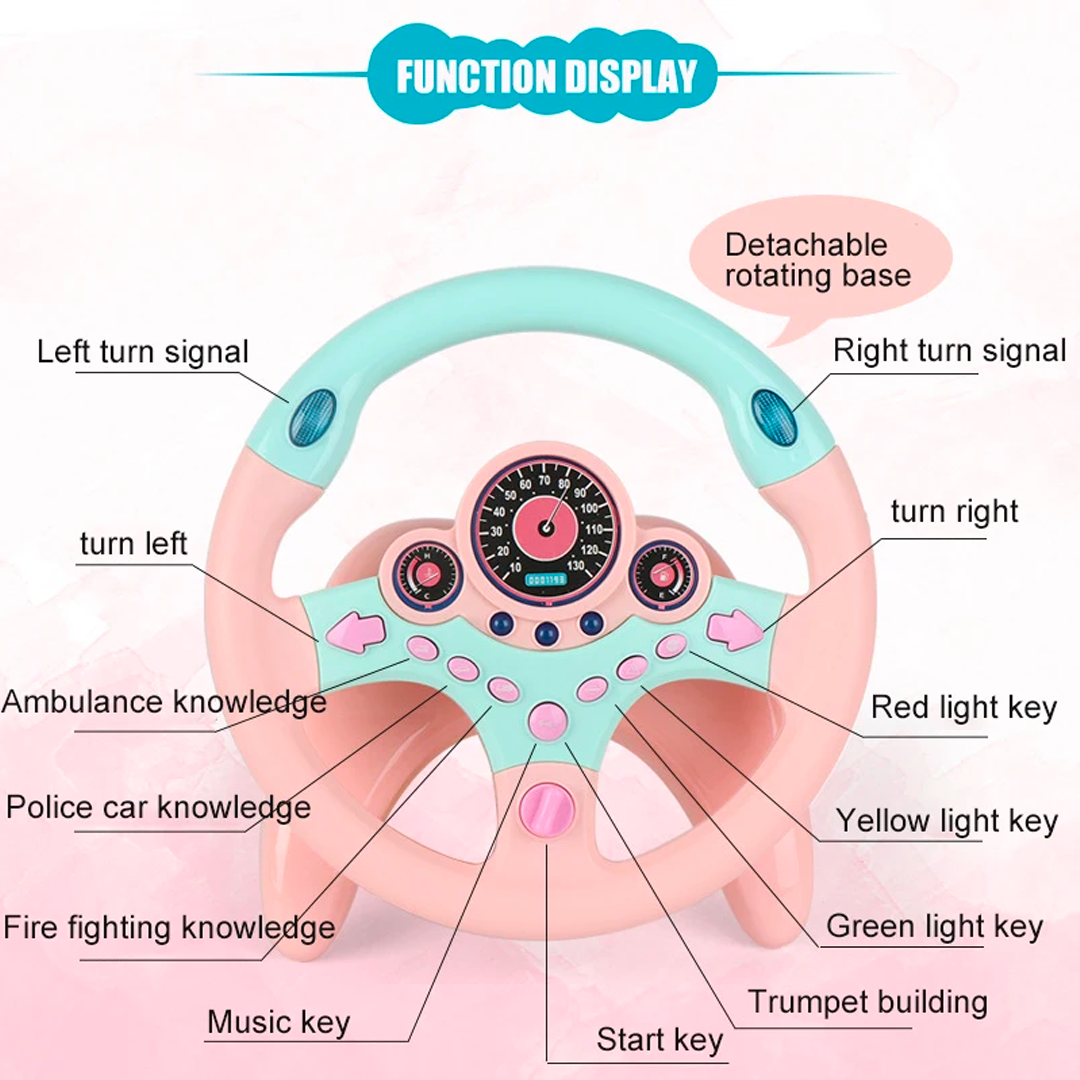 Детски волан със звукови ефекти осигурява автентично шофиране за малките изследователи! 🚗🎶 Имитира клаксон. звук от стартиране на кола и много други.